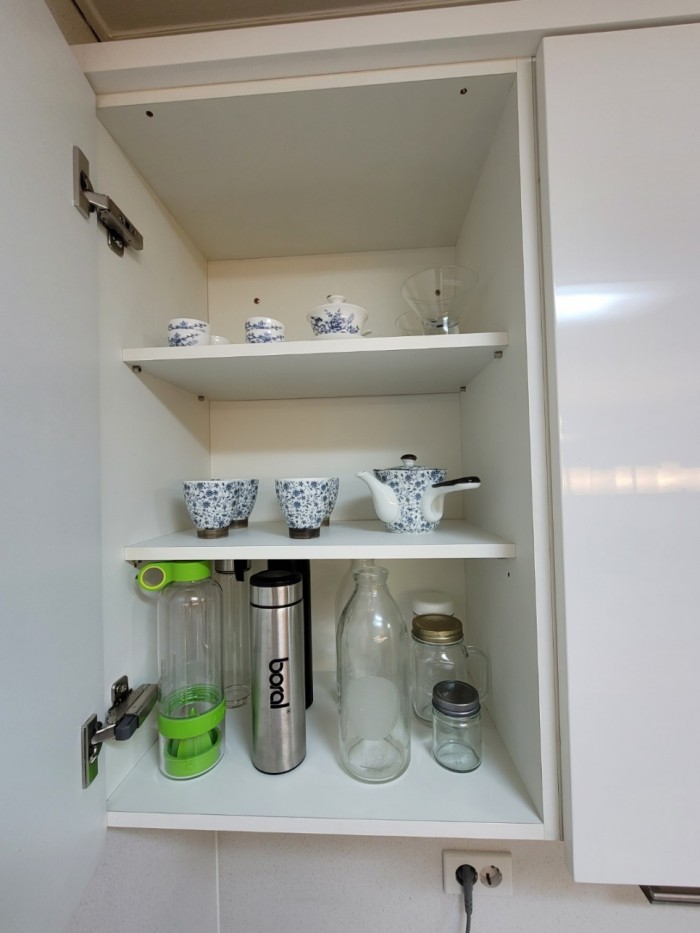 사용하지 않는 유리잔들은 안쪽으로 배치를 하고, 많이 사용하는 유리잔들은 앞쪽으로 배치를 합니다.