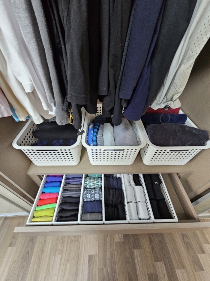 앞에서 이야기드린 옷 정리 방식에 따라 정리했어요.