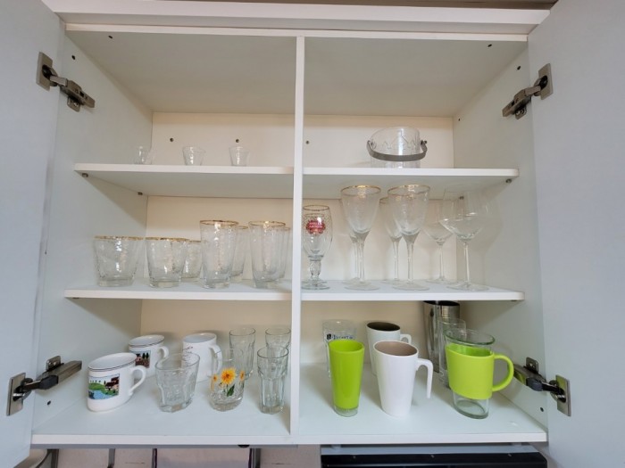 사용하지 않는 유리잔들은 안쪽으로 배치를 하고, 많이 사용하는 유리잔들은 앞쪽으로 배치를 합니다.
